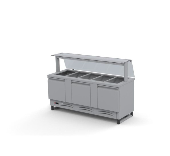 Hűtőpult 5xGN1/1 üveges felépítménnyel alsó hűtött tárolóval
