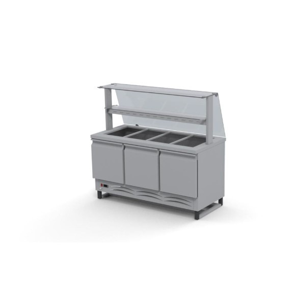 Hűtőpult 4xGN1/1 üveges felépítménnyel üvegpolccal alsó hűtött tárolóval
