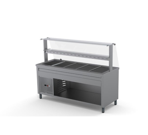 • Digitális vezérlés (4-8 °C), három oldalon burkolt, a kiszolgáló tér felől nyitott, alsó polc.