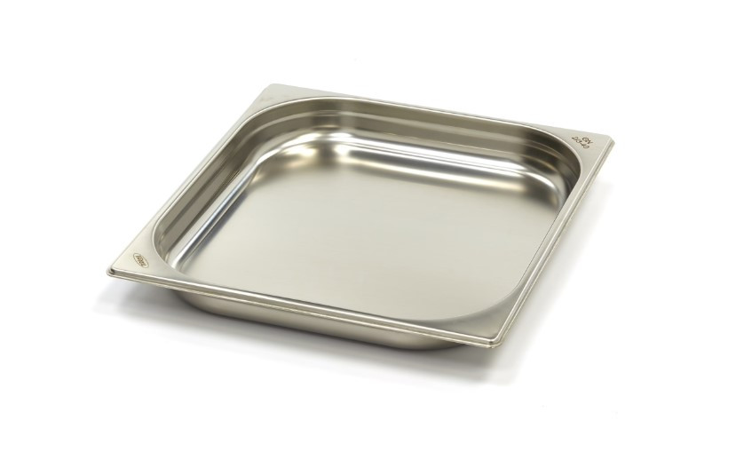 Ez a 2/3 méretű Gastronorm edény 4 cm mélységgel és 3,6 literes űrtartalommal rendelkezik. A 32,5 x 35,4 cm-es méretű rozsdamentes acél edény rakásolható és mosogatógépben tisztítható. Ez a GN edény ideális választás mindenféle vendéglátóipari berendezéshez, például sütőkhöz vagy bain marie-khez.