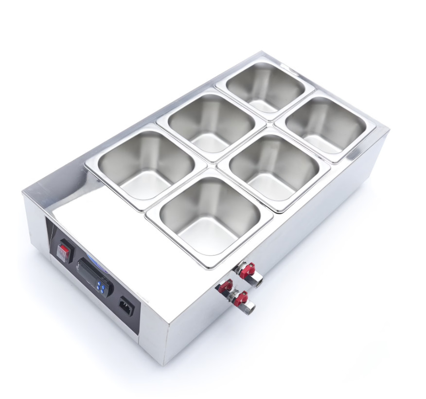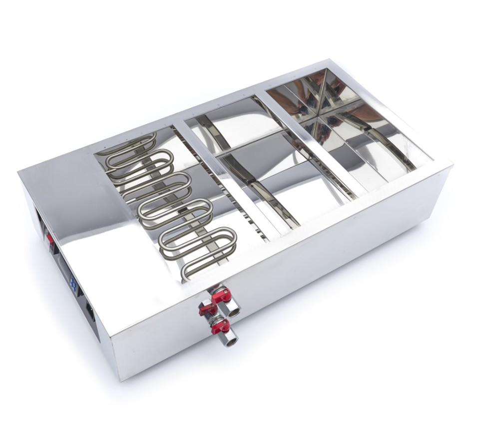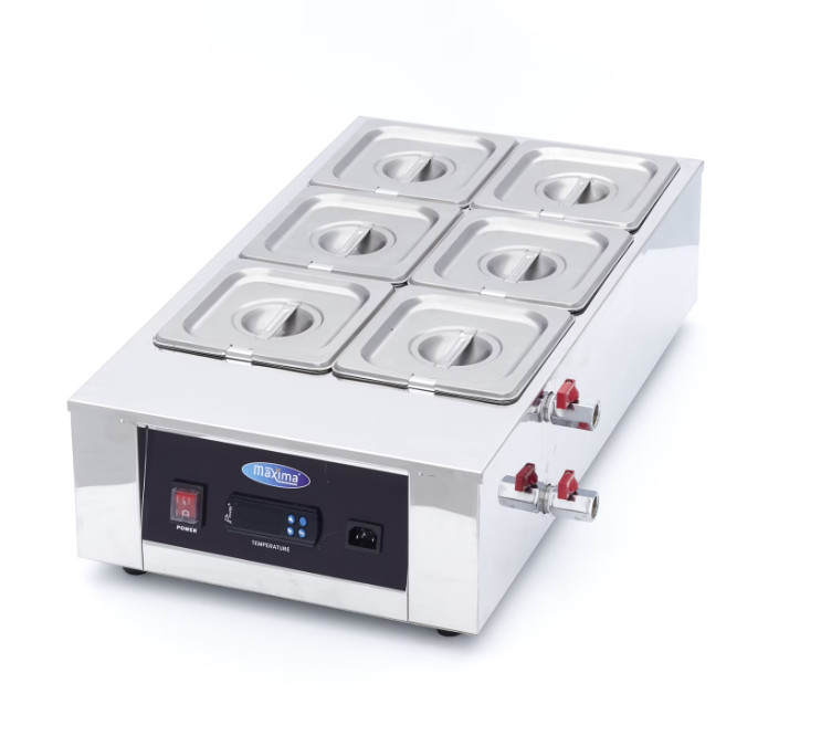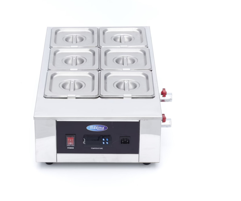 Ez a hattégelyes csokoládéolvasztó a sokoldalúság csúcsa. A bain marie módszer (vízfürdő) garantálja, hogy a csokoládé lassan, egyenletesen olvadjon meg, elkerülve a közvetlen hőhatás okozta megégést. Ez a modell tökéletes megoldás, ha széles kínálattal dolgozik: egyszerre tarthat melegen ét-, tej-, fehér-, rubint- és karamellás csokoládét, valamint egyéb önteteket anélkül, hogy több gépet kellene üzemeltetnie.