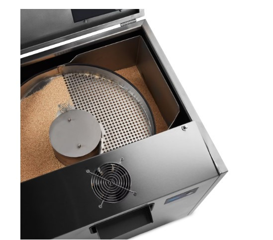 Ez a modell nagyobb tartállyal rendelkezik, kapacitása 5 kg polírozó granulátum. Ez biztosítja, hogy a nagy mennyiségű evőeszköz is mindig száraz szemcsékkel találkozzon, ami a foltmentes száradás titka.