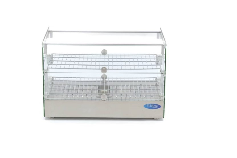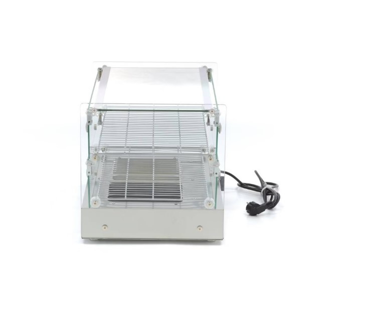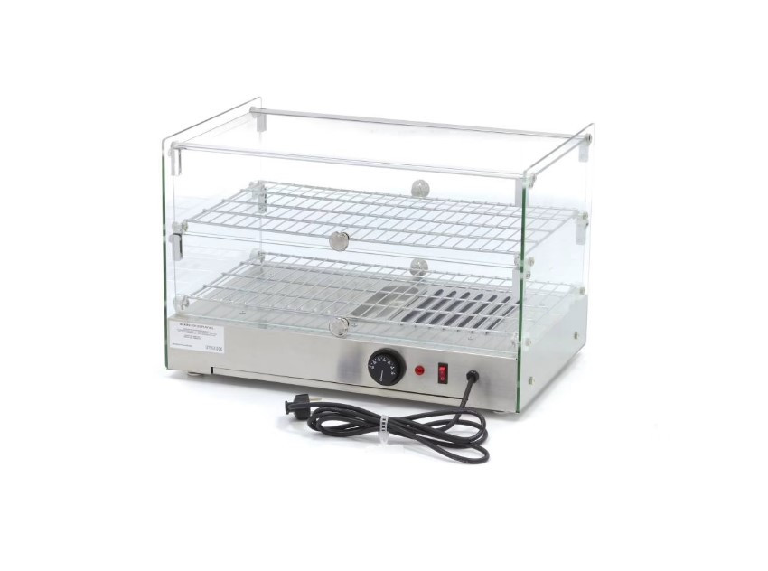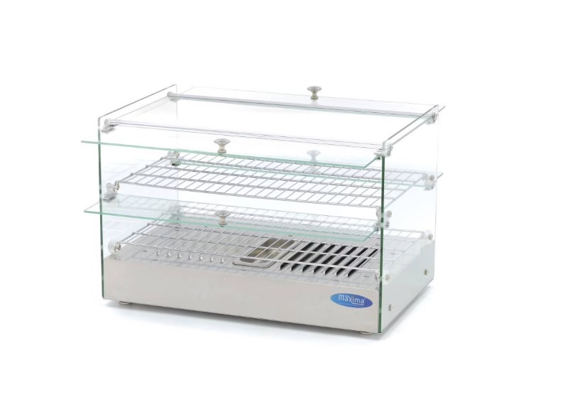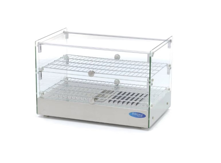 Ez a kompakt, professzionális melegentartó vitrin 50 literes kapacitással rendelkezik, és ideális megoldás különféle ételek melegen tartására. A két fix polccal ellátott, mindössze 55,4 cm széles készülék könnyedén elfér bármilyen pulton vagy asztalon, segítve a termékek vonzó bemutatását anélkül, hogy sok helyet foglalna.