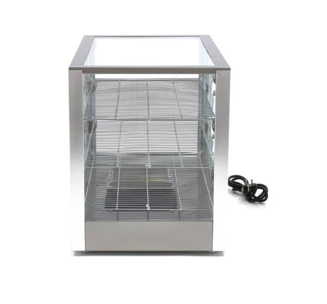 Amikor ezt a professzionális vitrint elhelyezi üzletében, biztos lehet benne, hogy kiváló minőségű eszközt választott, amely segít az impulzusvásárlások növelésében. A készülék minden oldalról üvegezett, így a vendégek azonnal rálátnak a kínálatra. Ez a robusztus, asztali melegentartó minden vendéglátóipari egység értékes darabja, legyen szó pékségekről, bisztrókról, szállodai reggeliztetőkről vagy benzinkutakról. Kompakt méretének és fix lábainak köszönhetően stabilan elhelyezhető bármilyen pulton.