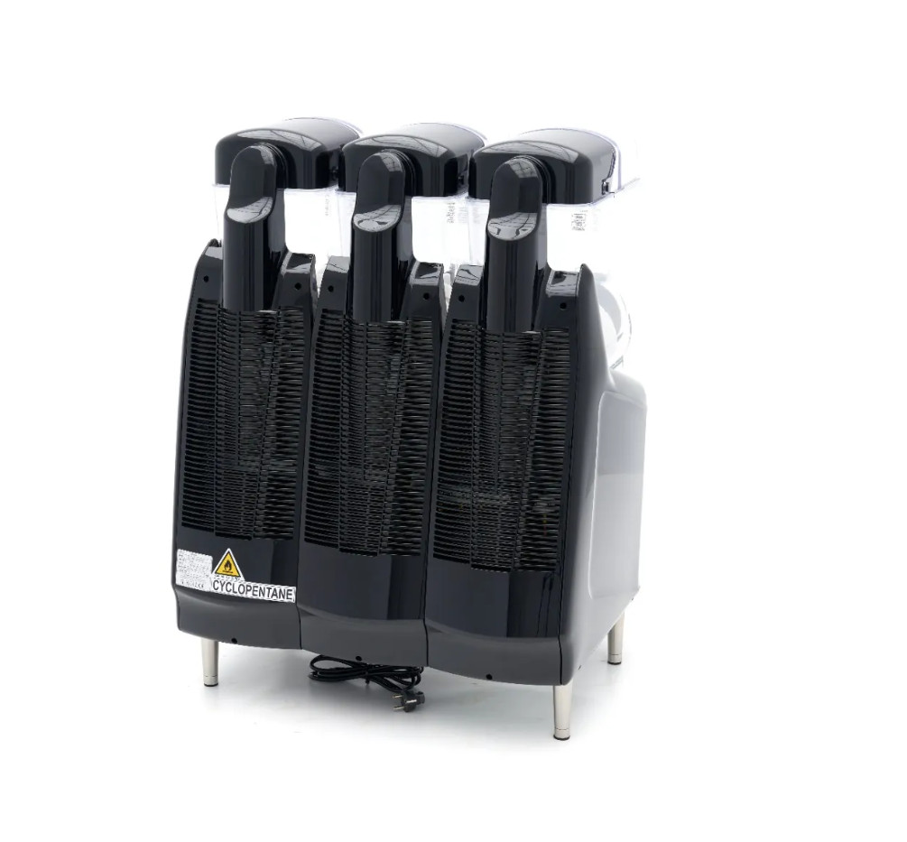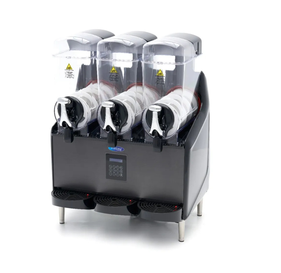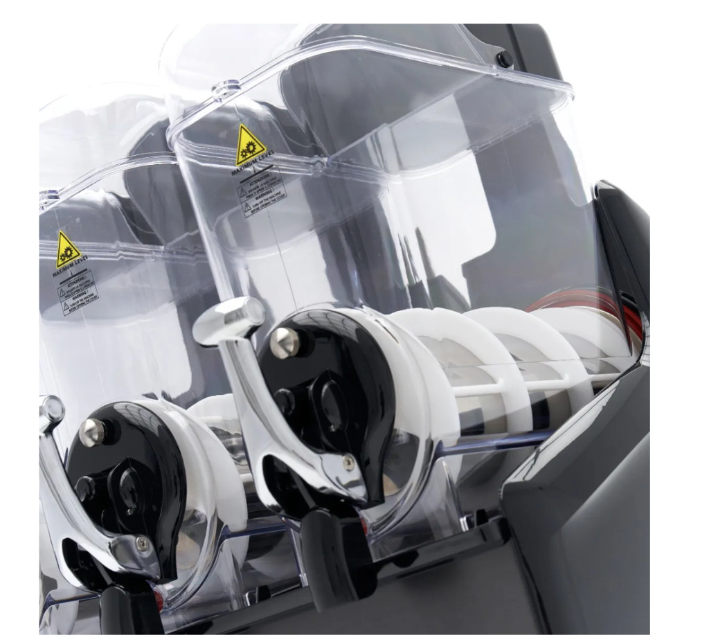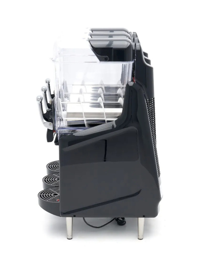 Ez a professzionális jégkása készítő gép három darab 12 literes tartállyal, különálló vezérléssel és kiemelkedő adagolási sebességgel rendelkezik. Ideális választás, ha egyidejűleg háromféle granitát, gyümölcslevet vagy egyéb hűtött italt szeretne kínálni vendégeinek. A 63 választható színű világítás és a 7 fokozatú állagbeállítás garantálja a látványos megjelenést és a professzionális minőséget.