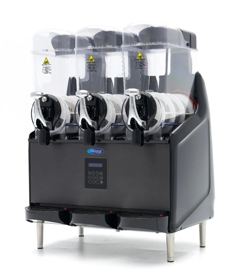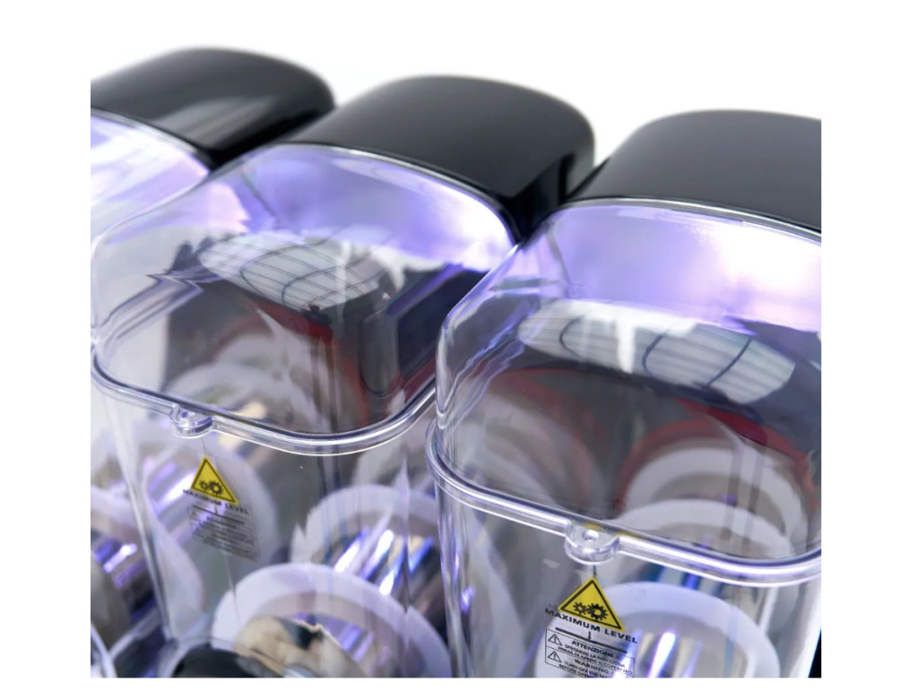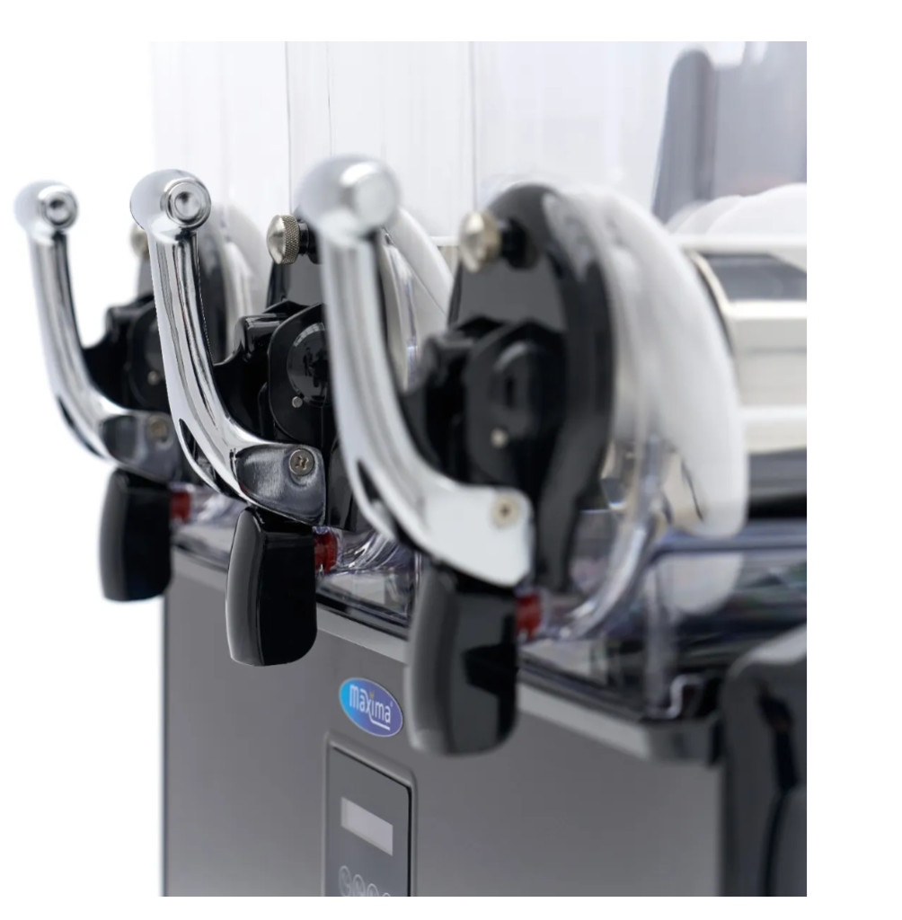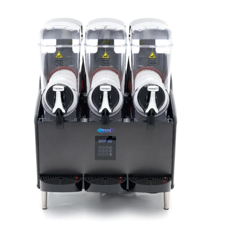 Ez a professzionális jégkása készítő gép három darab 12 literes tartállyal, különálló vezérléssel és kiemelkedő adagolási sebességgel rendelkezik. Ideális választás, ha egyidejűleg háromféle granitát, gyümölcslevet vagy egyéb hűtött italt szeretne kínálni vendégeinek. A 63 választható színű világítás és a 7 fokozatú állagbeállítás garantálja a látványos megjelenést és a professzionális minőséget.
