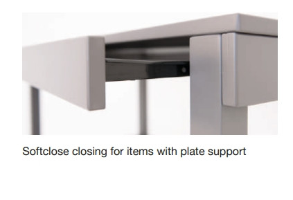 Softclose záródás a tányértartóval rendelkező termékekhez: A lágy záródás megakadályozza a zajos becsapódást és a sérüléseket a kocsik használata során.