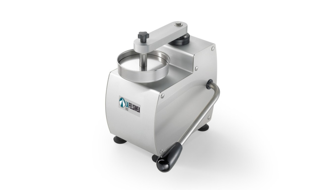 - Az önközpontosító formák (szabadalmaztatott rendszer) garantálják a forma és a nyomófelület tökéletes illeszkedését, biztosítva ezzel az egyenletes és hibátlan pogácsaformát.