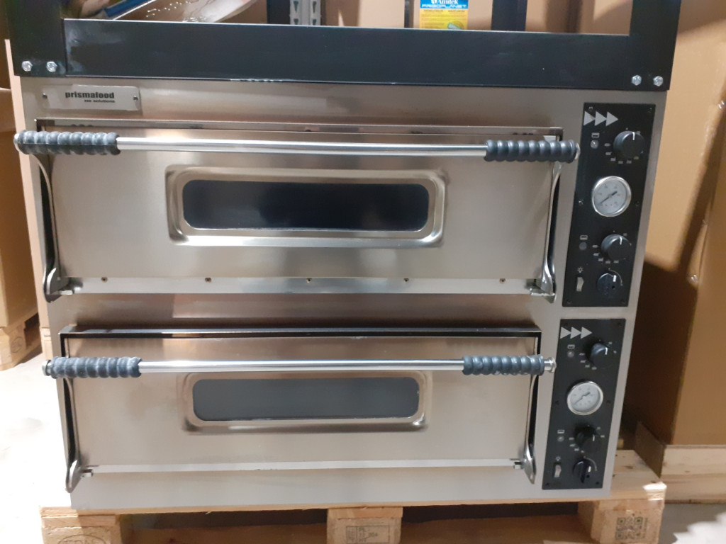 Két aknás pizzakemence belső világítással, hőmérséklet mérővel, rm. lenyithatóajtókkal, megfigyelőablakkal, gőzkieresztéssel, samotlap betéttel, 45 - 450 C° külön szabályozható alsó-felső fűtőbetéttel.