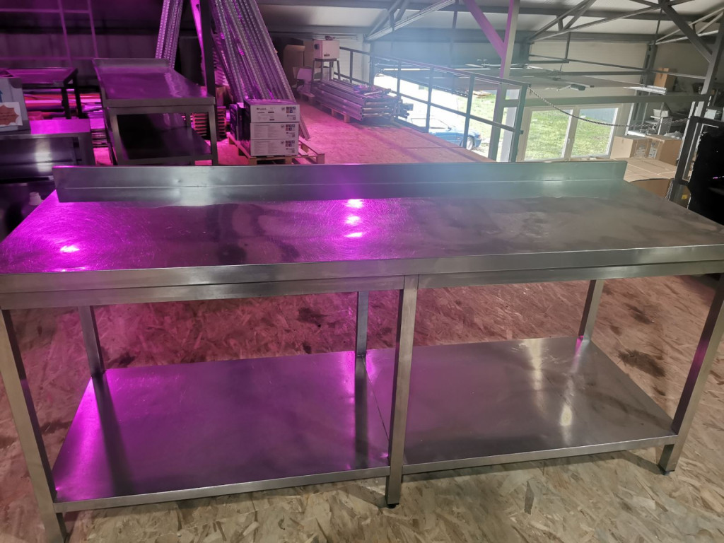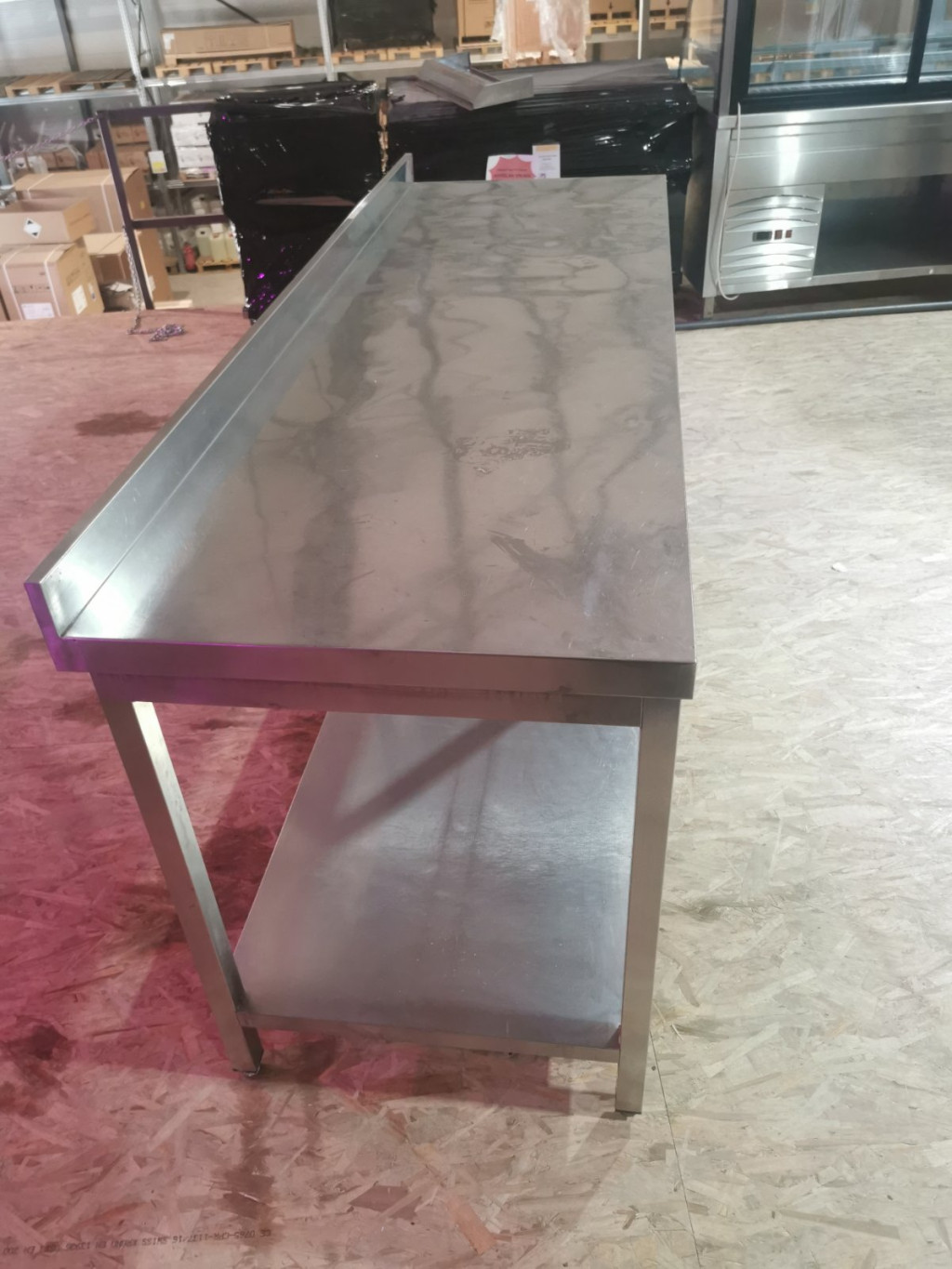 Rozsdamentes munkaasztal alsó polccal és hátsó felhajtással